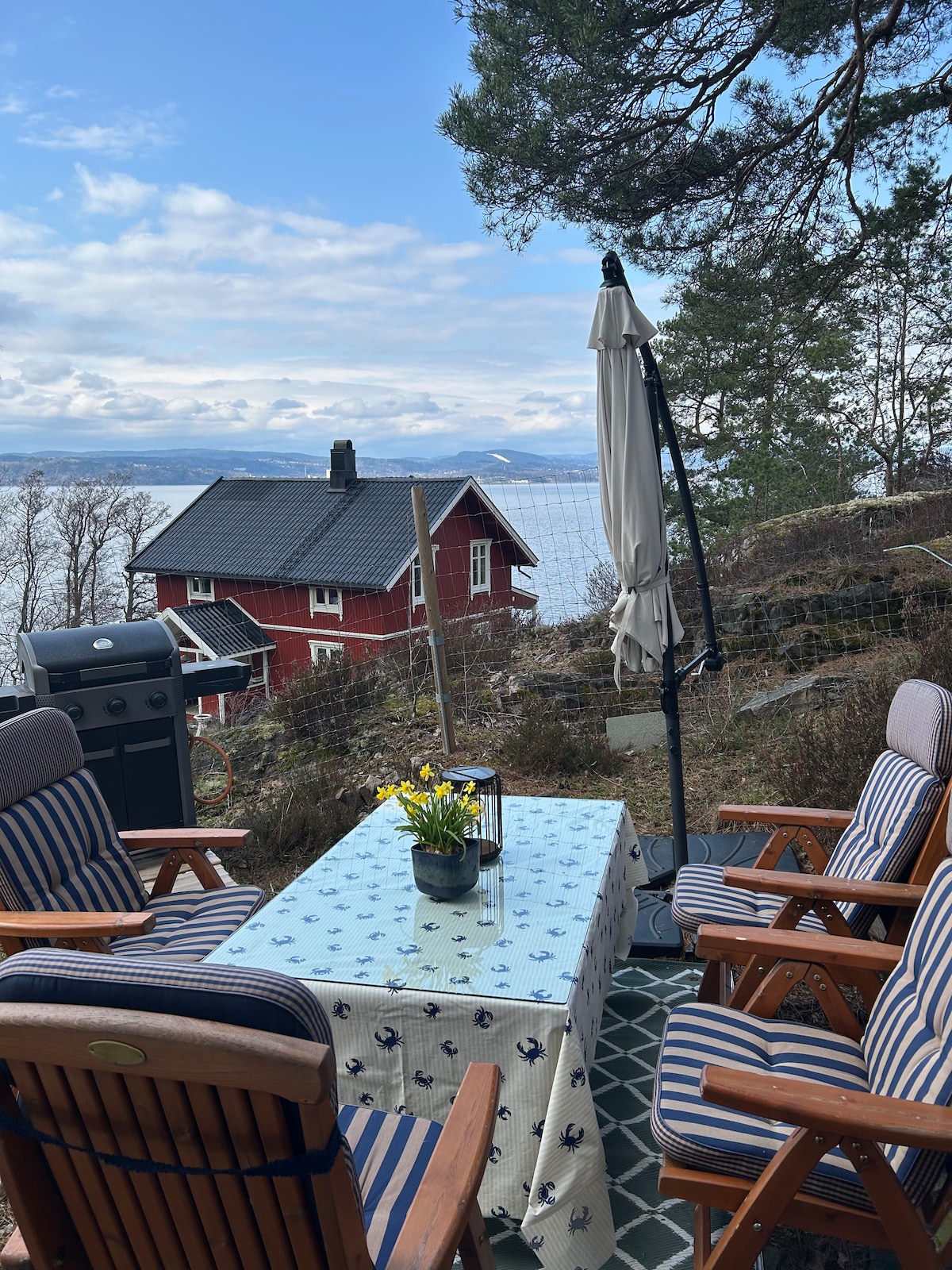 Bruk fridagene med et opphold på fjord : oslo. - Et minihus kun 45 minutter fra Oslo, med eventyrlig utsikt over fjorden. Her våkner du opp til 180 grader utsyn over sjø og natur. Huset er innredet etter landskapet det ligger i. Furu, granitt, marmor, kobber, speil og glass reflekterer den storslåtte naturen. På terassen utenfor kan du fyre opp grill- eller bålpanne, følge med på fjordlivet og la roen senke seg. Det er kort vei ned til flere badeplasser, dere kan gå kyststien, eller, chille.