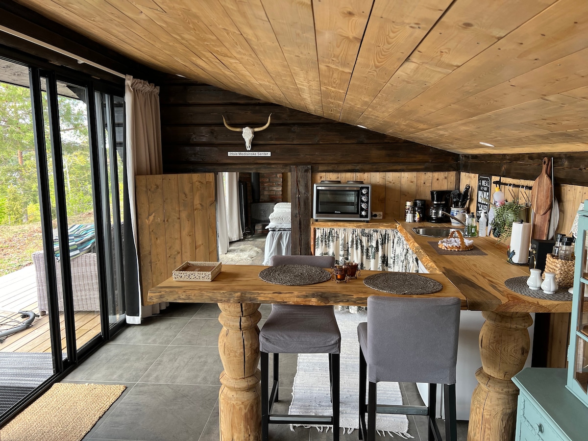 We hope you enjoy our home-made cabin - outdoor shower - Jacuzzi ( always hot ) - Aircondition - refrigerator - cook outside on a campfire - cinderella toilet - fantastic view of the forest and the Oslofjord - parking at the cabin This place should be relaxing all year round regardless of the weather. We hope you have a good trip and help us keep the place nice. Ps. Maybe horses will come and say hello