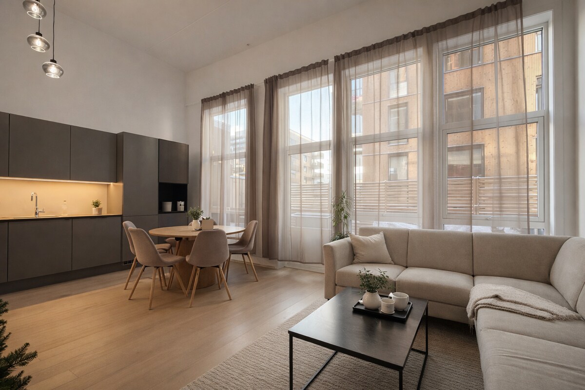 Stay in our modern apartment in the prestigious Posthallen, right in the heart of Oslo. This newly renovated gem features a cozy mezzanine with a queen-size bed and a comfortable sofa bed in the living area. Enjoy a spacious living room, fully equipped kitchen, free Wi-Fi, and a 98-inch TV for a cinematic experience. The apartment is perfectly located near the best of Oslo - restaurants, shops, and major attractions. Experience modern and convenience in one of Oslo’s most renowned buildings.
