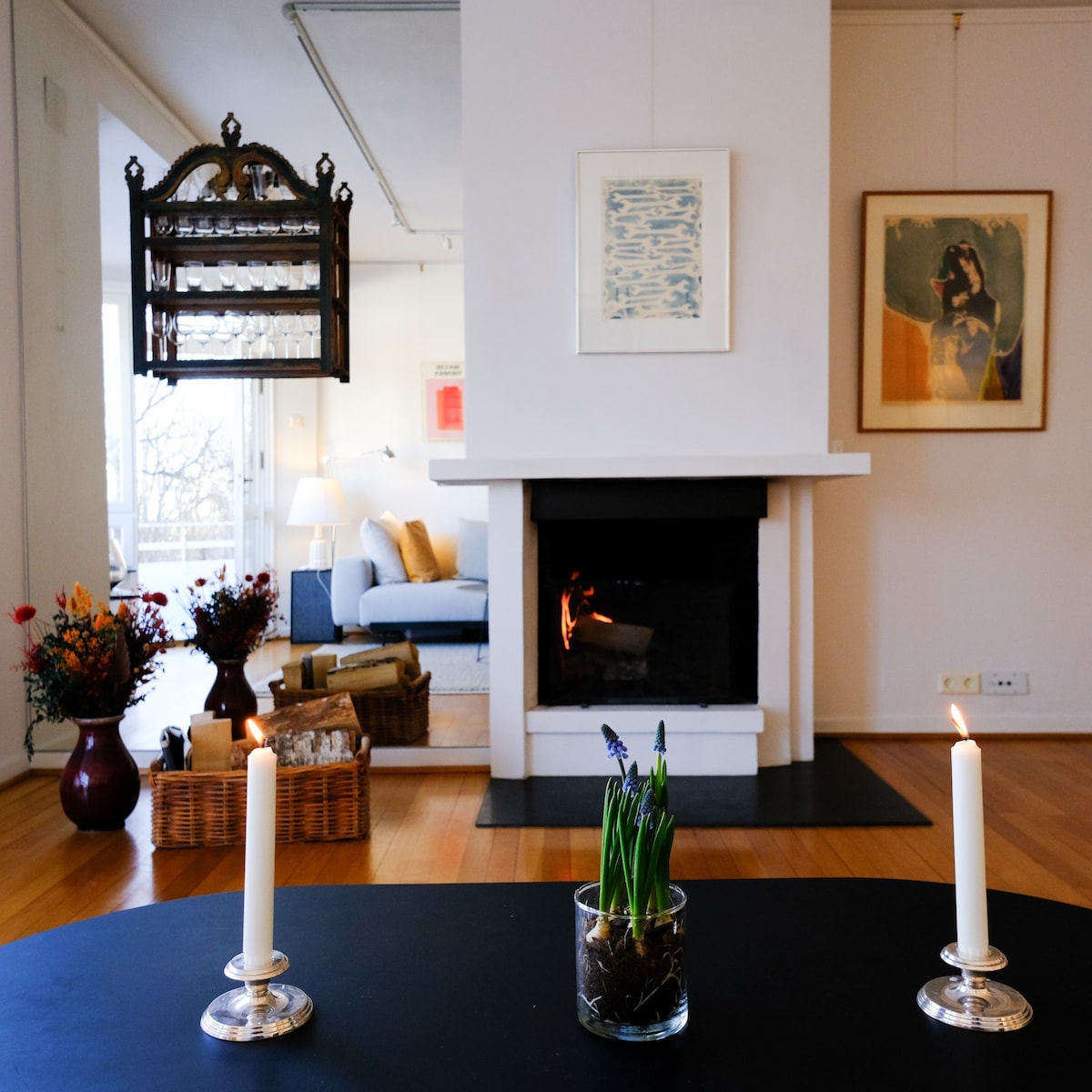 Bright, modern apartment in central Majorstuen. Designed in a clean Scandinavian style with pale wood floors, large windows, concrete surfaces, and black steel accents. Enjoy natural light, a cosy fireplace, and an open layout. Close to the T-bane, tram, bus, bars, and shops, and within walking distance of Vigeland Park. Ideal for couples, friends, or business stays with a comfortable desk space and a private roof terrace.
