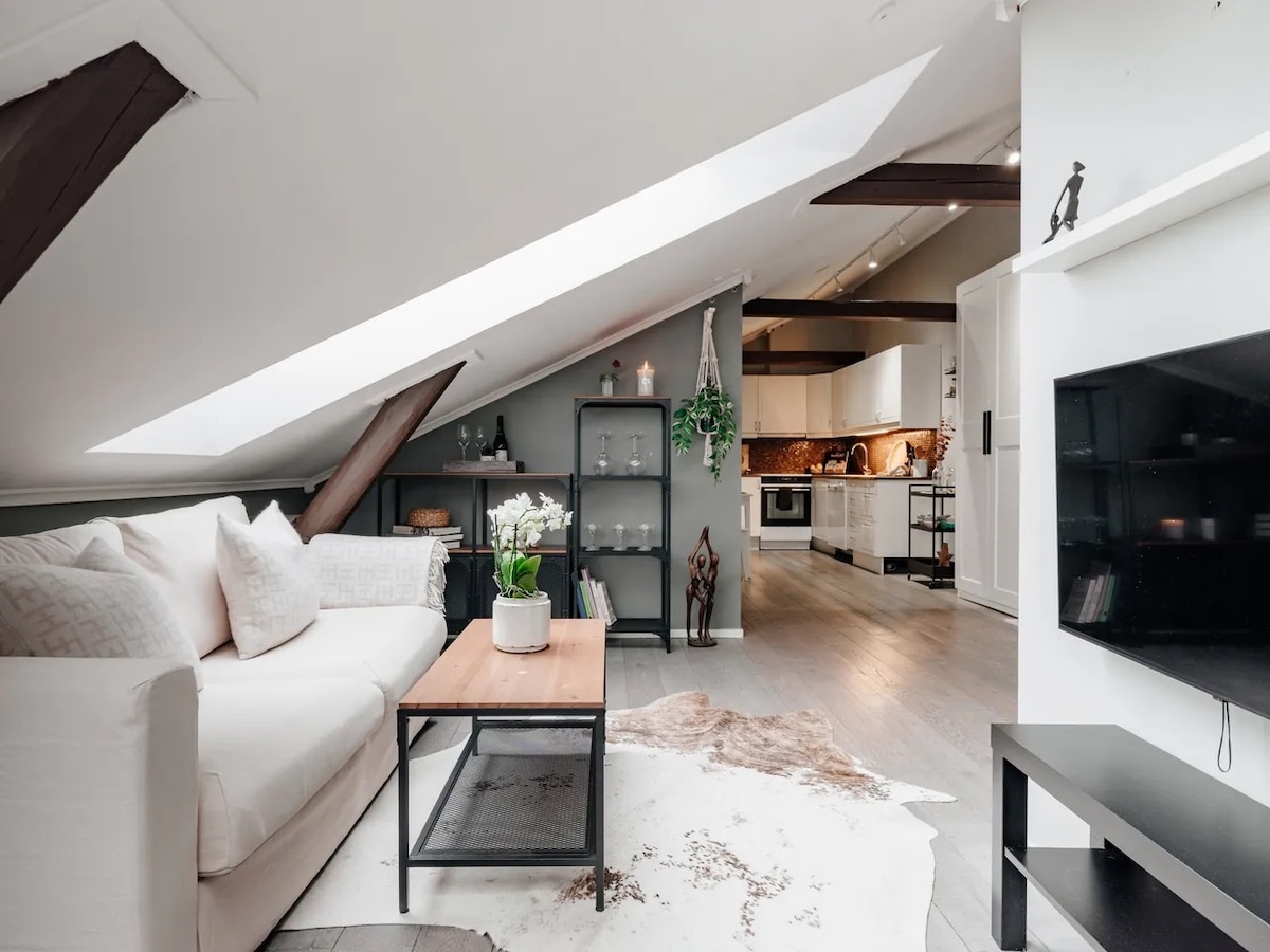 Stay in this 2-bed, two-storey loft penthouse in Oslo City Center! 🏙️ Just 5 min from the main train station 🚉 Enjoy hotel comfort + apartment perks: ✨ Views of the Royal Palace 👑, Opera 🎭, MUNCH 🖼️ & Holmenkollen Ski Tower 🎿 ✨ Prime location – walk to «everything» 🚶♀️ ✨ 24h self check-in 🔑 ✨ Fully equipped kitchen 🍽️ ✨ Modern bath + washer/dryer 🛁 ✨ Rooftop terrace access 🌇