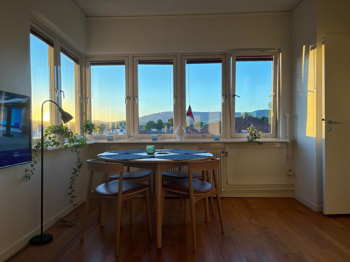 THE BEST VIEW IN OSLO: 5th floor, 180° view. ALL FACILITIES: coffee and breakfast included, cooking facilities, towels and bedsheets, 200*140cm bed, wifi, washing machine, etc. THE BEST AREA IN OSLO: central and well connected to everyting + exclusive and safe + genuine Oslo experience with few tourists + plenty of restaurants and cafes. SUPERMARKET NEXT DOOR. Welcome to a unique Oslo experience! :):)