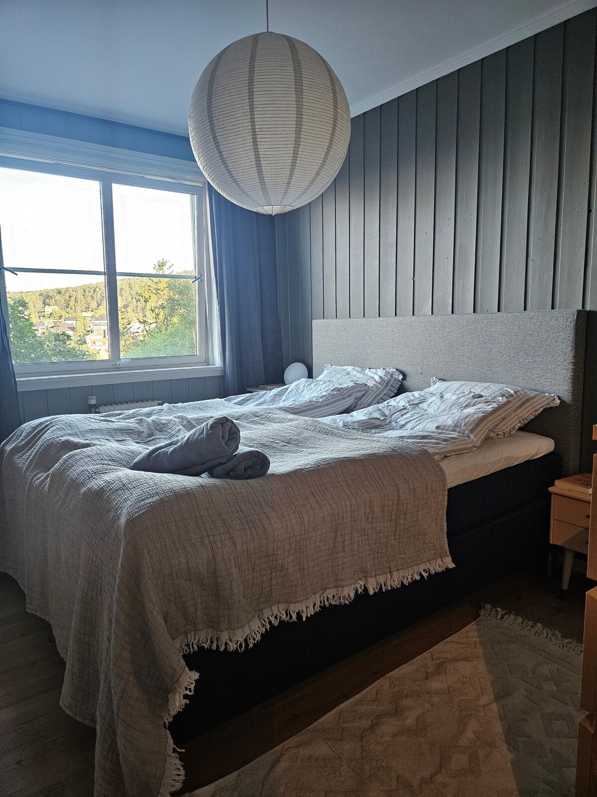 Welcome to our home! We will be gone for the summer and we can share with you this quiet, modern and sceneric three-floor balcony apartment by Oslos Northwestern forest. Well-connected to Oslos city centre by metro, bus (20 min) or car. Huge living room, modern kitchen with big fridge, three bedrooms with double beds, newly renovated bathrooms (two showers) and space balcony with view of lakes and the city. The forest is virtually next door. There is an elevator to the metro (!).