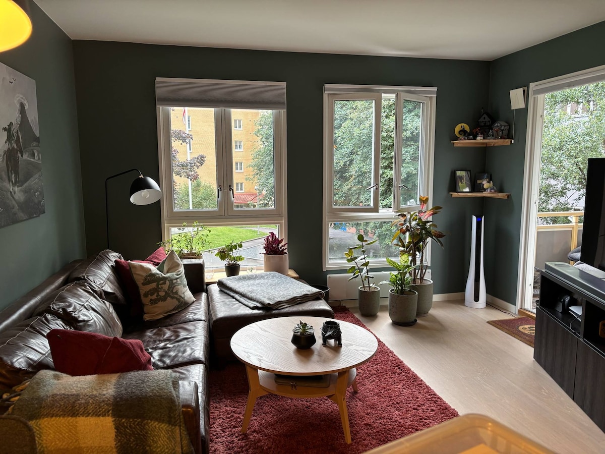 Bright and stylish 2-bedroom apartment by Klosterenga Sculpture Park – where art, nature & city life meet! Perfect for families. Enjoy green surroundings, unique sculptures, and great city access right outside your door. 🍽️ Fully equipped kitchen 🛜 Free WiFi 🅿️ Free indoor parking 🆓 No cleaning fee 🛏️ Towels & linen included 🔌 EV charger in garage (fees apply) 🚍 1 min to nearest bus stop – quick access to Oslo city center