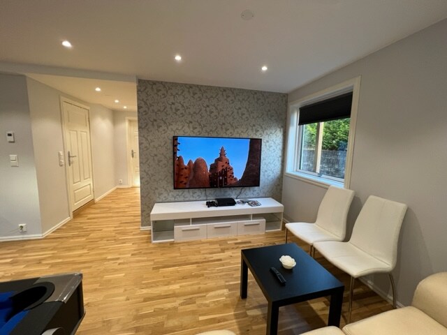 Cozy suite in the basement of a stylish 2015 house, with private entrance. It is located in the beautiful and calm area of Ullern, close to subway and bus stops that connect to the city centre in 15-20 minutes, and Flybussen FB3 (direct night line to Oslo Airport in 70 minutes). This 23 m2 suite consists of a nice living room, bathroom and washing room. There is NO KITCHEN available but there is a mini-fridge, microwave oven and coffee/tea amenities.