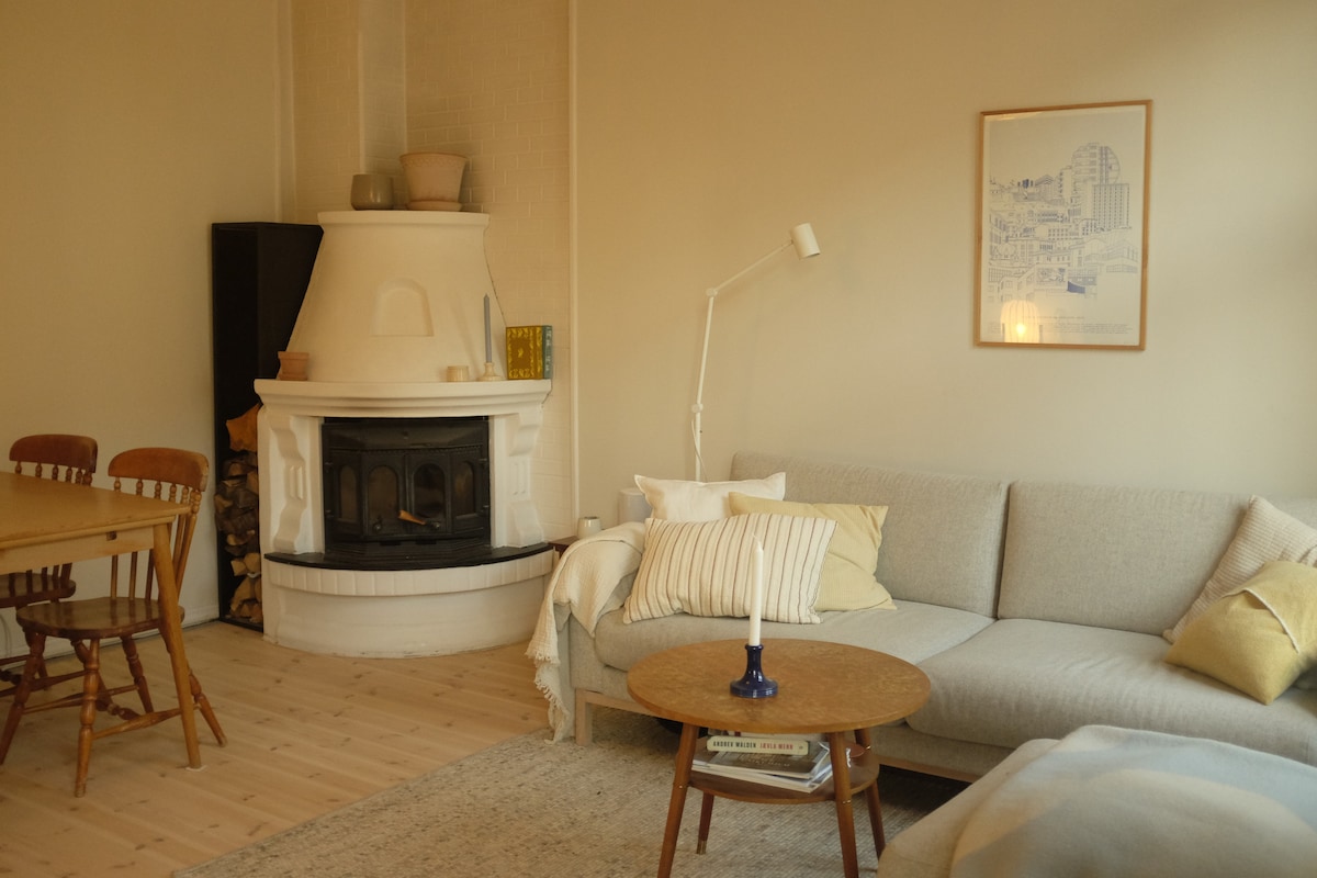 Leiligheten er et romslig loft. Her er detaljene designet av nordiske arkitekter, i en skandinavisk stil for koselige kvelder og arbeid. Stuen er stor og luftig med sofa og spiseplass. Her er det loftsvinduer og autentisk treverk i taket og heltre gulv. Soverommet er romslig med en stor komfortabel seng og en praktisk kjøkkenkrok. Alt du trenger skal være tilgjengelig :) Arbeidsrommet er godt designet for fokusert arbeid med bærbar pc eller lesing. Bøker tilgjengelig for å lese. Velkommen!