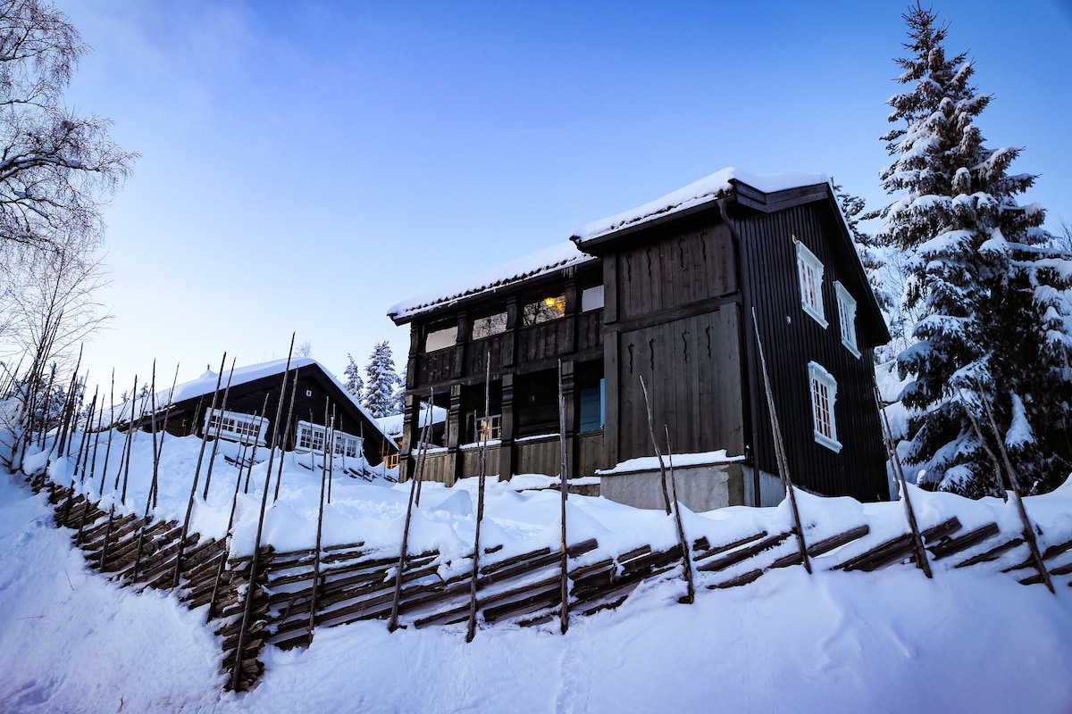 Come and stay in an old traditionally farmhouse for employees at a Norwegian farm in Noresund, 100 km and approximately 90 minutes drive from the city-center of Oslo. Two hours and 155 km drive from Oslo Airport Gardermoen (OSL). This is in the heart of the Norwegian fairytale tradition. It is about 450 meters from the lake and 10 minutes drive from the ski slopes of Norefjell. The high mountains of Norway starts here. The trolls are in the woods just behind the cabin. They are all nice.