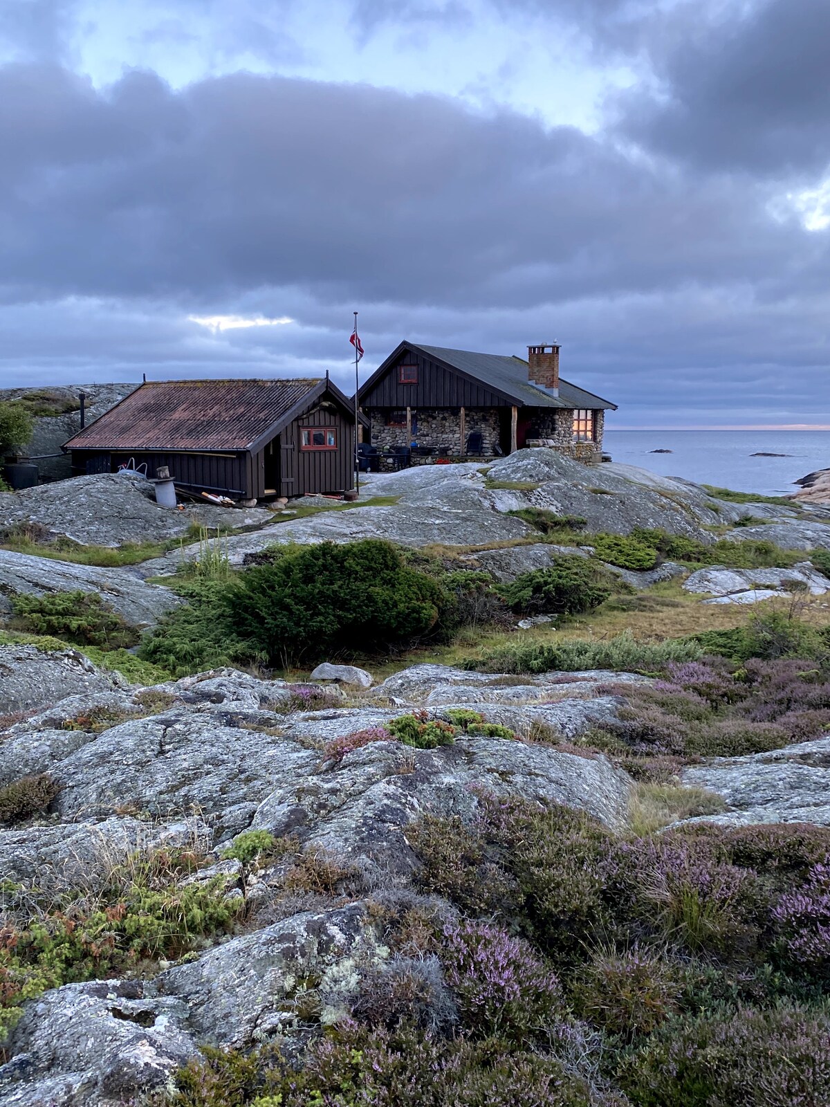 Cozy Guesthouse. Free parking. Sea access, 2 levels, close to Kragerø center. Bakstebua is a guesthouse that has been used as a bakery. It has private access and a small path down to the sea. Here you can use our private spot to swim and relax. On the top floor there is an apartment with a modern kitchen, shower and toilet. There is a full size bed, and a small loft where 2 children can sleep. On the ground floor, with separate access, there is a simple kitchen, bathroom and sofa-bed.