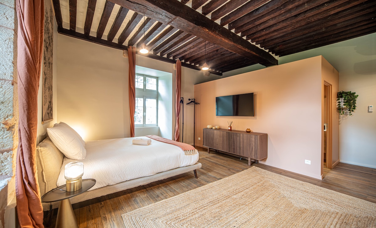 Ce loft climatisé est unique, il est situé en plein coeur du centre historique tout en étant au calme au fond d'une cour à proximité immédiate des Hospices. Il possède une vue incroyable sur la place Carnot et même sur le clocher des Hospices. Nous l'avons entièrement rénové et décoré avec des matériaux nobles de qualité. Plafond cathédrale impressionnant de 6m de hauteur, très lumineux. Parking gratuit à proximité, restaurants et commerces sur la place. Tout équipé et arrivée 24/24