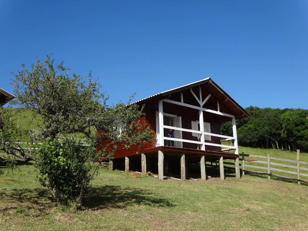 Casa da Colina em estilo rústico, sala com lareira, varanda, lindo deck com vista para os açudes, lugar reservado dentro do Sítio Sete Laranjeiras... excelente local para descansar e fugir da rotina da cidade. Casa aconchegante e completamente isolada!! Estamos a 14 km dos altos do Morro da Borússia em Osório ou vindo por Santo Antônio da Patrulha, excelente lugar para banhos de cachoeira, a Nascente do Rio dos Sinos fica à 7 km do sítio com sua cascata de 126 metros de queda d'água.