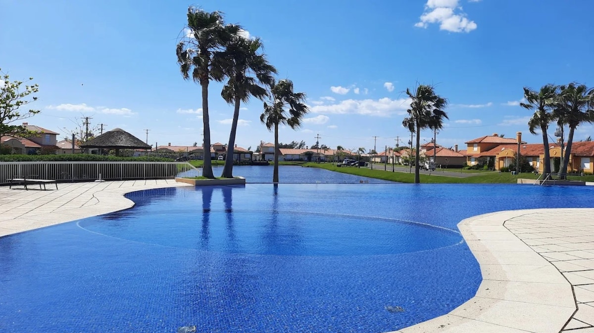 Linda casa p/casais e famílias no Cond. Las Palmas, Noiva-do-Mar, localizada em frente à piscina principal, ampla cozinha equipada, lareira, 2 espaços home office, wi-fi 750mb, TV Claro- Net HD, 3 suítes cama queen e 1 suíte com beliche e duas camas solteiro, todas as suítes com ar-condicionado, churrasqueira, piscina privativa (4,0 x 2,0 x 1,2), pet friendly. Infra: Piscina térmica, 3 quadras tênis, sendo 1 de saibro coberta, beach tennis, padel, futebol grama, salão de jogos e lagos.