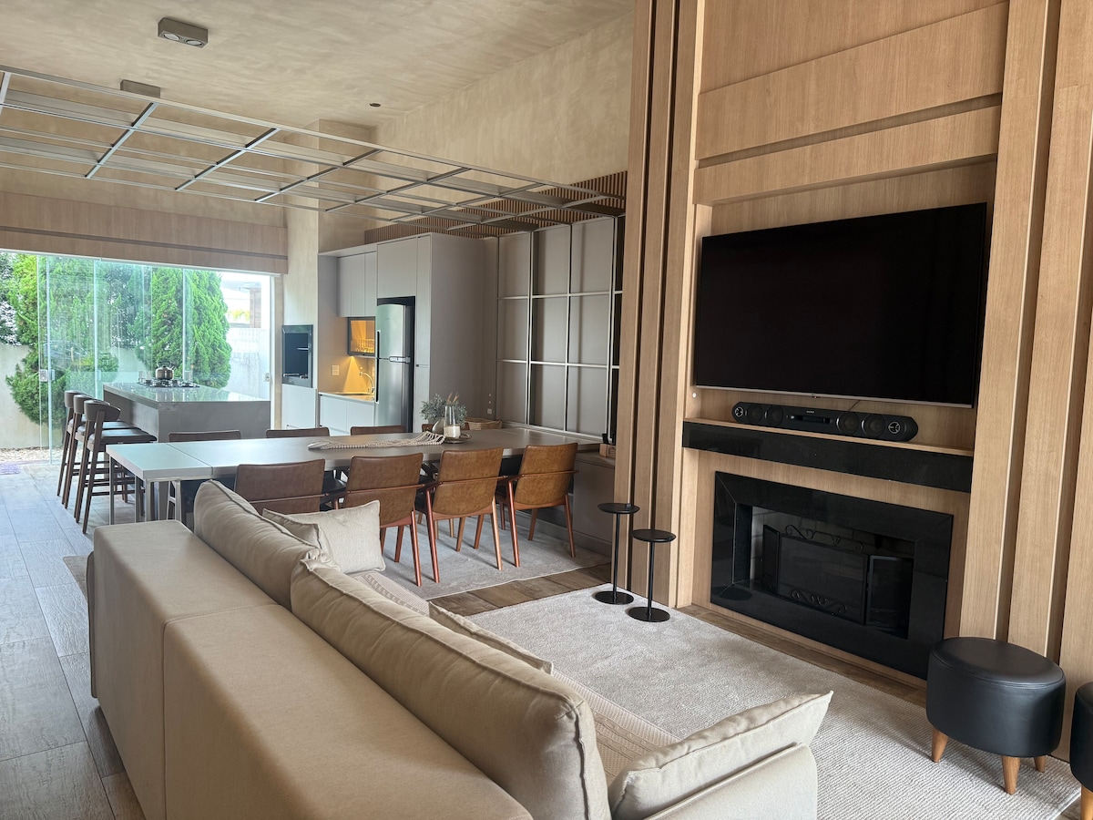 Casa de alto padrão, térrea, Condomínio com infra, beira lago, nova, confortável e linda, 3 suítes + 1 lavabo, jardim de inverno, área de serviço completa lavadora/secadora, churrasqueira, sala e cozinha com living estendido, lareira e piscina para o lago com POR DO SOL INCRIVEL!