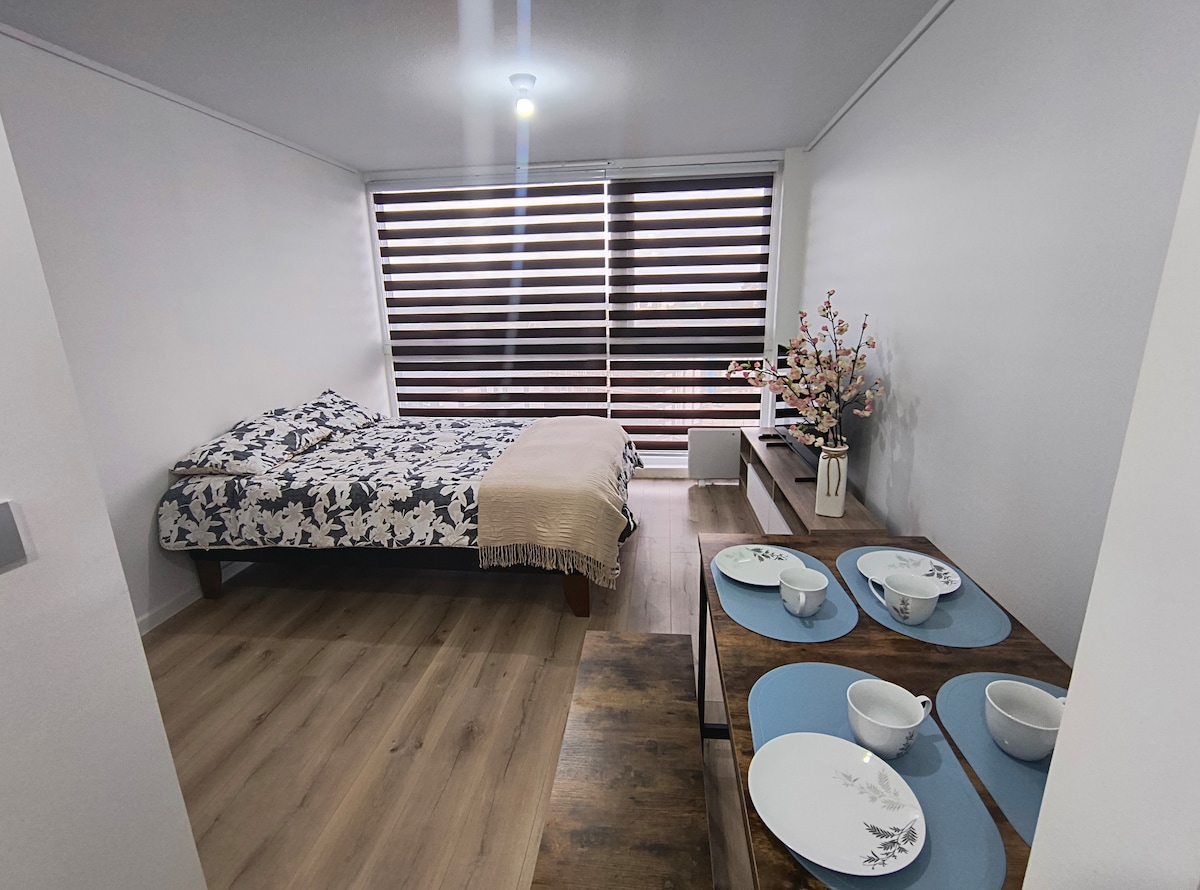 Bienvenidos , espacio nuevo 2025 con cama 2 plazas y futón, totalmente eléctrico en calefacción y cocina, artefactos y cama de calidad (rosen), nos preocupamos porque tengan la mejor experiencia, a 1 cuadra del mall de Osorno y 2 cuadras de la plaza de armas. Contarás con todas las comodidades como si estuvieras en tu hogar, trato personalizado, contarás con gimnasio y la opción de arriendo a quincho para eventos. Contamos con lavandería de pago y estacionamiento privado!