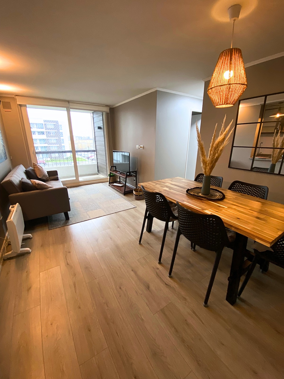 Disfruta de la estancia de este alojamiento tranquilo a 10 minutos del centro de la ciudad y a un costado de la ruta de la costa U40 zona de playas, Cercano a Gasolinera Stripcenter cuenta con Pizzería (Papa Johns), Veterinaria, Farmacia, Botillería y cajero automático. Departamento nuevo con estacionamiento en el interior del condominio y lo necesario para la estadía incluyendo aire acondicionado! Petfriendly 🐶 Cuenta con un sofá cama cómodo para la tercera persona. Cuenta con Caja fuerte.