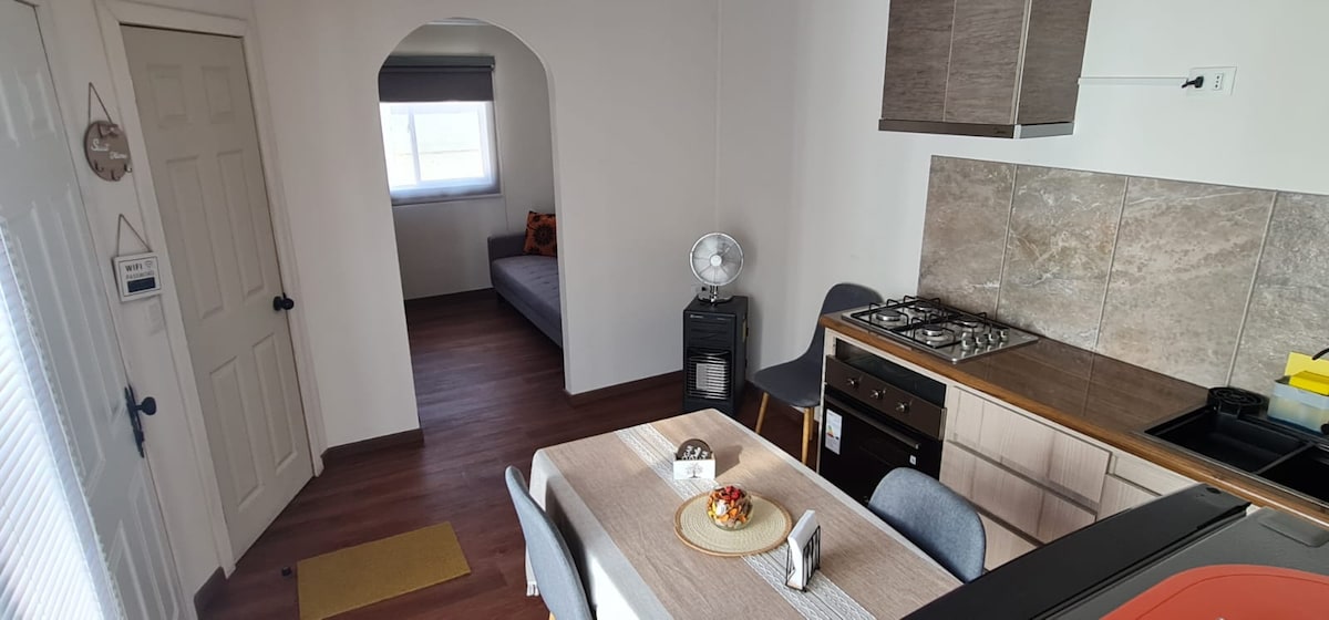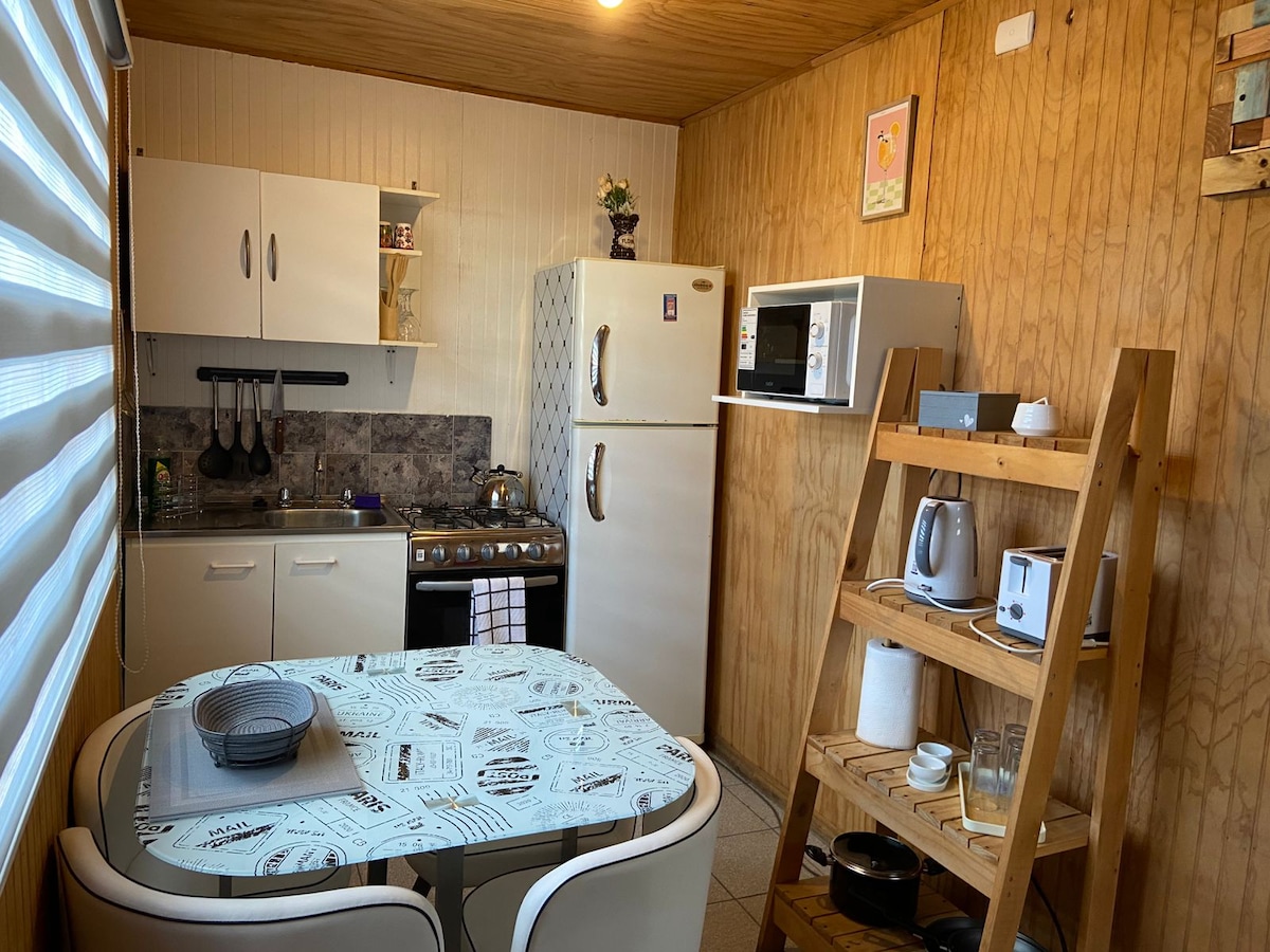 Disfruta de este acogedor y nuevo alojamiento en barrio tranquilo y céntrico. a 5 minutos del centro de Osorno en vehículo. a 100 metros del parque bellavista y puente colgante. Equipada con todo lo necesario para tu estadía. Alimentación a convenir en caso de necesitar.