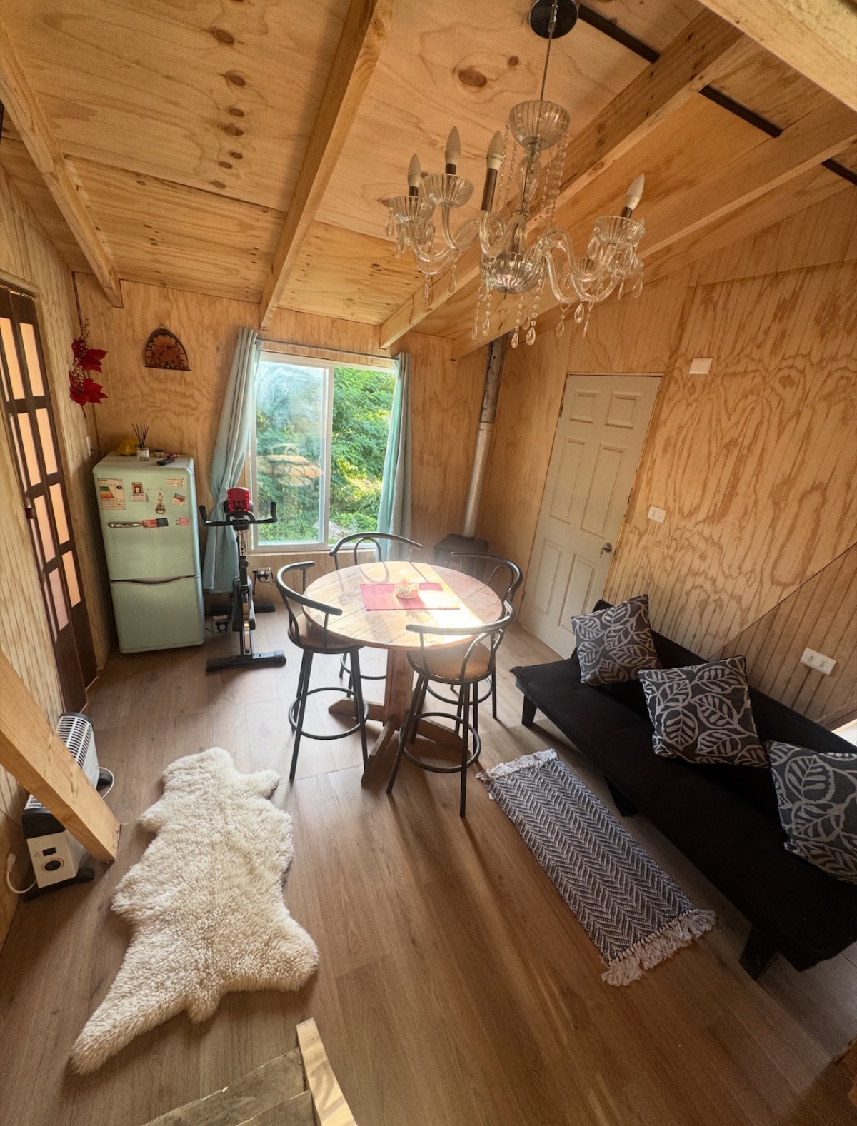 Esta cabaña es un refugio elegante y silencioso, pensado para el descanso y la comodidad. Ubicada en un entorno seguro y de fácil acceso, cuenta con estacionamiento privado y gratuito. Está completamente equipada para una estadía sin preocupaciones, con terraza, comedor al aire libre, espacio para ejercitar, y una estética muy bien cuidada. A pocos pasos se encuentra uno de los parques más destacados de la ciudad, ideal para caminar y conectar con la naturaleza.