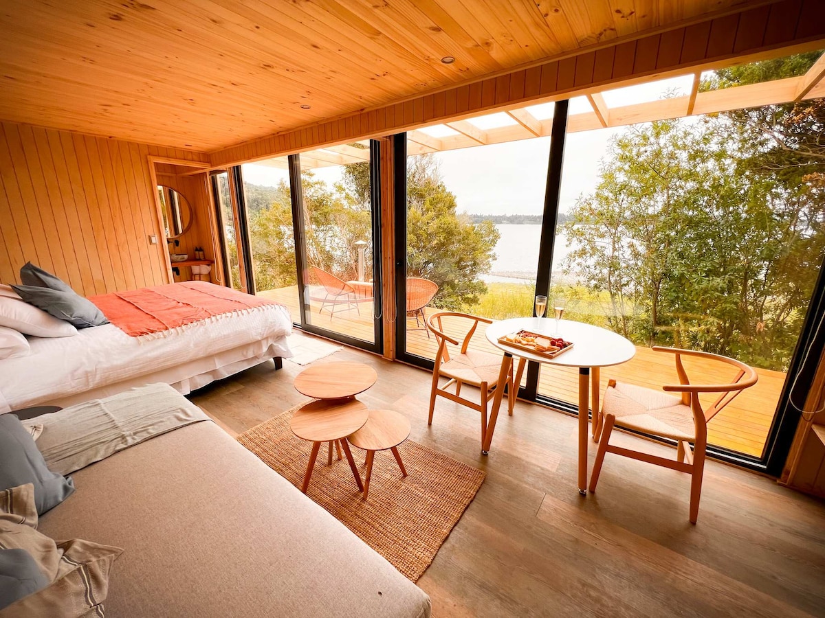 Calma Patagonia Lake Cabins is an exclusive tourist complex on the shores of Lake Llanquihue, located 20 minutes from the city of Puerto Octay, and just 5 minutes from the town of Cascadas. It has 8 luxury cabins, fully equipped, with terrace and private Hot-Tub (daily Hot-Tub use value is additional). Surrounded by Coihues forests and ancient trees, it is located a short distance from the most emblematic tourist spots of Lake Llanquihue. We invite you to disconnect and relax.
