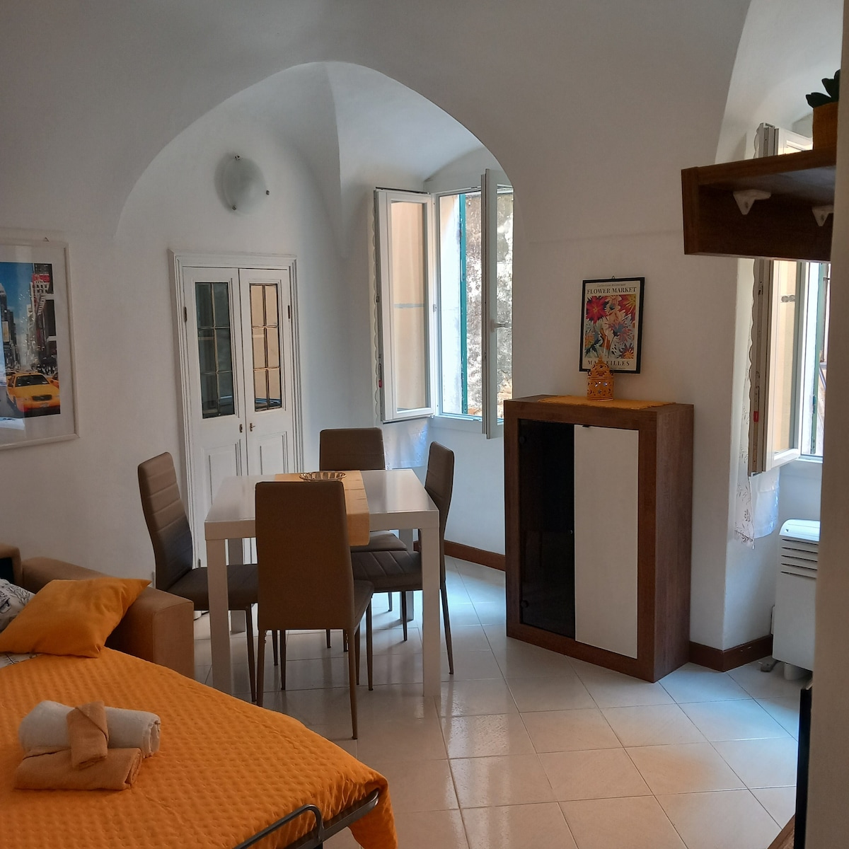 Accogliente e silenzioso appartamento all'inizio del centro storico di Sanremo "La Pigna", tra i saliscendi dei carrugi tipici liguri a 3 minuti a piedi dal Teatro Ariston e dalla via dello shopping, a 5 dal Casinò, dalle spiagge e dai bar della movida. L'alloggio può ospitare fino a 4 persone: letto matrimoniale e un divano letto a due piazze. A pochi passi vi è un parcheggio pubblico. Riscaldamento con pompe di calore, ventilazione e aria condizionata.
