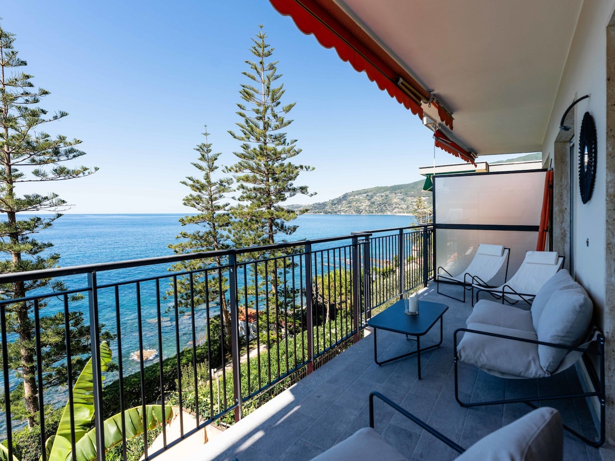 Affascinante e moderno appartamento interamente ristrutturato con vista mozzafiato aperta su tutto il Golfo di Ospedaletti immerso in un oasi di giardini fioriti e vegetazione subtropicale. Potrete rilassarvi sulla terrazza esposta totalmente a sud e respirare i profumi della Liguria. L'arredamento vi farà sentire avvolti da un'atmosfera tipica mediterranea con un'ispirazione al mondo nautico. Benvenuti nella Riviera dei Fiori dove potrete godervi il miglior microclima della regione e non solo.