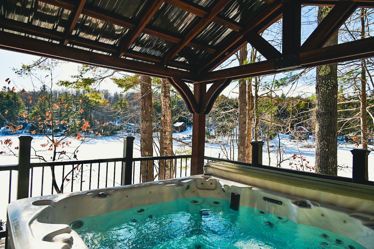 The Canopy is one of 5 luxurious tiny homes that make up Littlefield Retreat, a tranquil woodland village of 3 treehouses and 2 hobbit houses – each with its own private hot tub and dock. To see all five dwellings, click on the photo to the left of “Hosted by Bryce”, then click “Show more…”. This 15-acre forest retreat on Littlefield Pond offers our guests an experience that feels like a trip up to the woods of northern Maine, but is closer to home and to all the attractions of southern Maine.