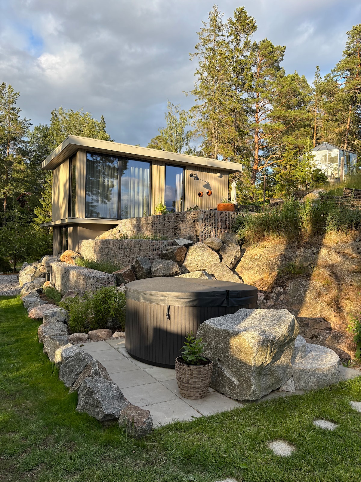 Varva ner högt upp över trädtopparna på denna mysiga staycation i Stockholms skärgård. Upplev total ro i detta charmiga och avkopplande boende, där naturen och lugnet omfamnar dig. Här kan du njuta under stjärnhimlen i en jacuzzi högt upp bland trädtopparna med utsikt över horisonten. Endast en kort promenad från havet!