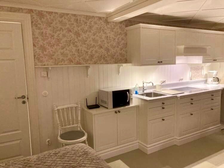 Den lilla vita gäststugan på vår villatomt är 25 kvm stor och innehåller de flesta bekvämligheter du behöver för några få nätter. Utanför finner du en liten ostörd uteplats med hallonlandet som granne och med utsikt över hela trädgården. Lugnt område nära till Svartån. I byn finns även Kaptensbostaden som erbjuder slagauktioner och har egen inredningsbutik med begränsade öppettider.