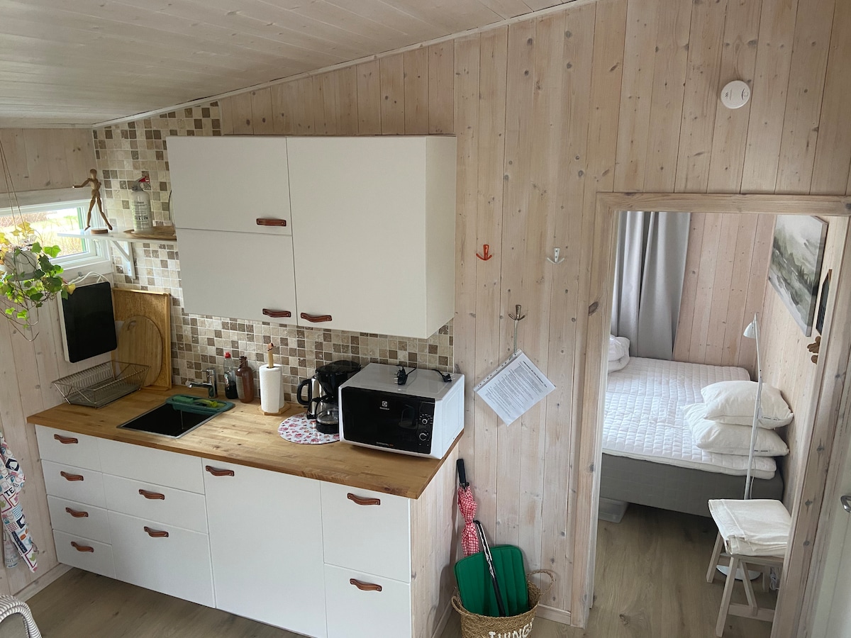 LITET gårdshus 20kvm, avskilt på värdens innergård. Park.plats i trädgård. Underbart läge 50 m från havsvik, 2 km till centrum med gång/cykelbana. Cyklar finns att låna. AC, WiFi, Pentry med kokpl. Te/kaffebr. micro, kylskåp, grill. Litet badrum med dusch,toa. Lakan/handduk medtages, kan även hyras 50:- sv kr (5 euro) per person. Betalas vid ankomst. Slutstäd innan avresa av hyresgäst. Slutstäd kan även utföras av värd, efter överenskommelse, 100:- sv kr(9euro) Ej husdjur, ej rökn.inomhus.