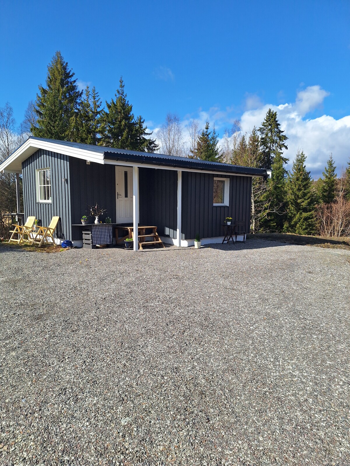 Cozy studio, 3 minutes from E6. 8 minutes from Sweden. The studio is a free standing house from 2012, with a basic full size kitchen. Just steps from the door, there is trails leading to the forest. There is trails going to a water tower or bays. Historic sites are plentiful. Only 1,2 km from the ocean. The lodging is private and quiet.