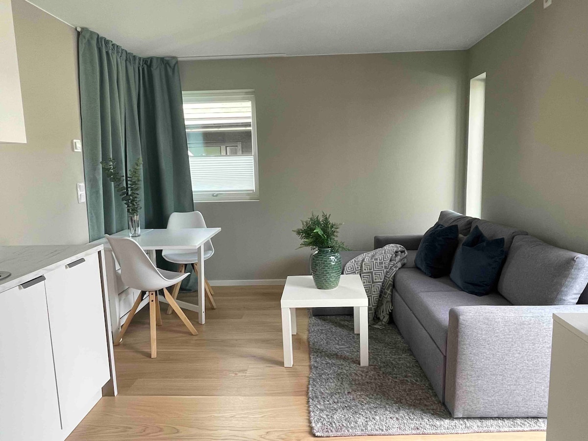 The apartment is located in a rural setting near the Halden Canal. It is fully furnished, as can be seen from the pictures