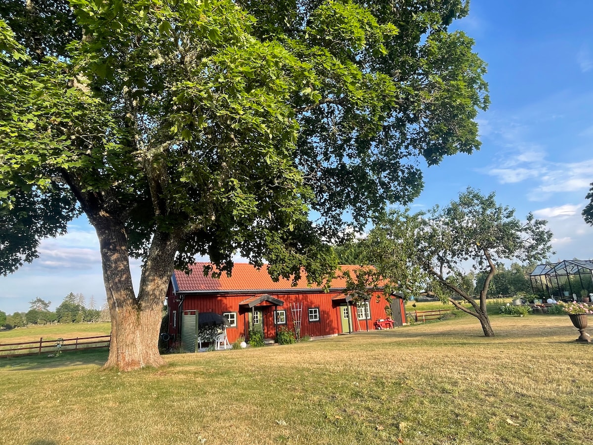 Stort och underbart charmigt hus på gård från 1880-talet. Här finns generösa ytor för umgänge både ute och inne. Bada i poolen eller ta bastubad, lek eller yoga i ladan. Grilla på den trevliga grillplatsen eller på kolgrill. Utrustning finns för spel på den stora gräsmattan: badminton, boule och krocket. Huset är fullt modernt men har sin gamla charm bevarad, med kakelugnar, vackra trägolv, vedspis och spröjsade fönster. Uppvuxen trädgård med fruktträd och bärbuskar.