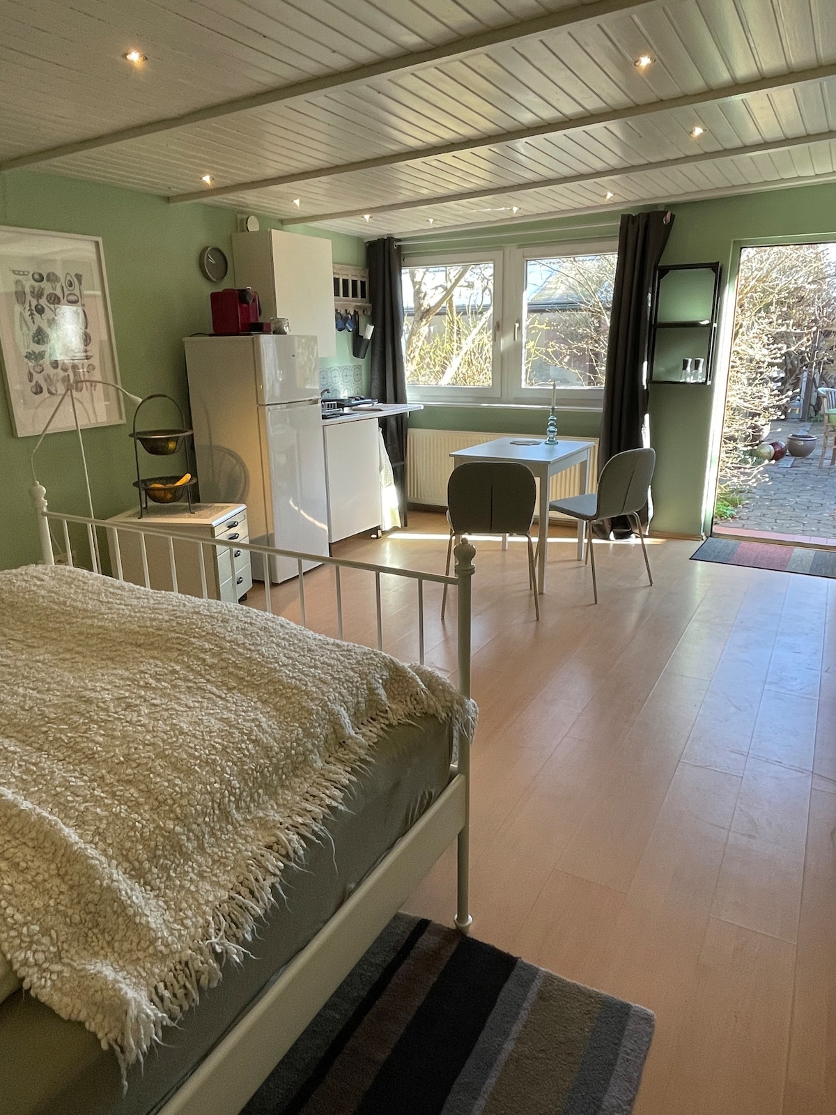 MEIN LIEBLINGSZIMMER ist ein Appartment mit eigenem Duschbad. Herrlich in einem großen Garten, direkt im Anschluss an unser Haus gelegenes Erdgeschoß Appartment mit Terrasse und Strandkorb. Komfortabel eingerichtetes, gemütliches Zimmer mit W-LAN, Fernseher und bequemem BOXSPRINGBETT. Pantryküche mit "leckerer" Nespresso .
