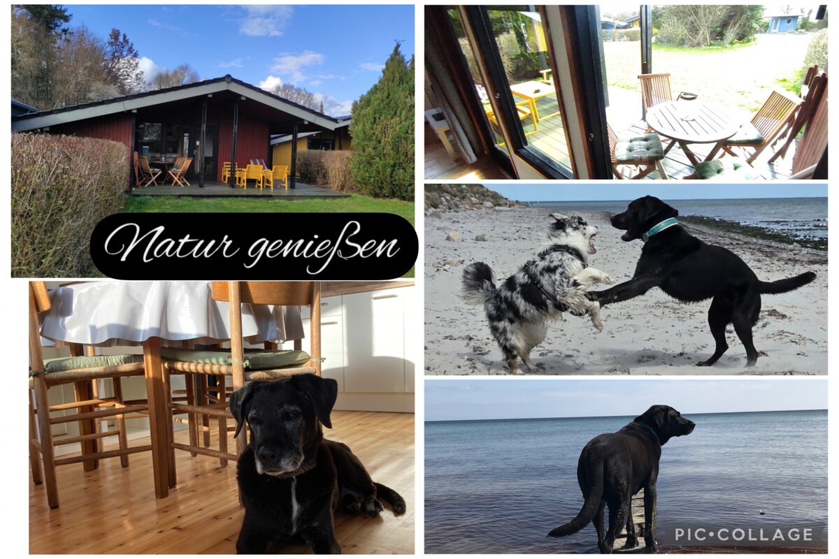 Welcome! This lovely cottage by the sea is 46 square meters and consists of two levels: kitchen/eating area + bathroom on the ground floor and studio sleeping/play area on the floor above. Located 150 meters from the harbor in beautiful Heikendorf. You have access to an in-ground trampoline, a canoe, and indoor and outdoor toys. We have two rabbits who love attention. We are an American-German family and want to make your vacation unforgettable.