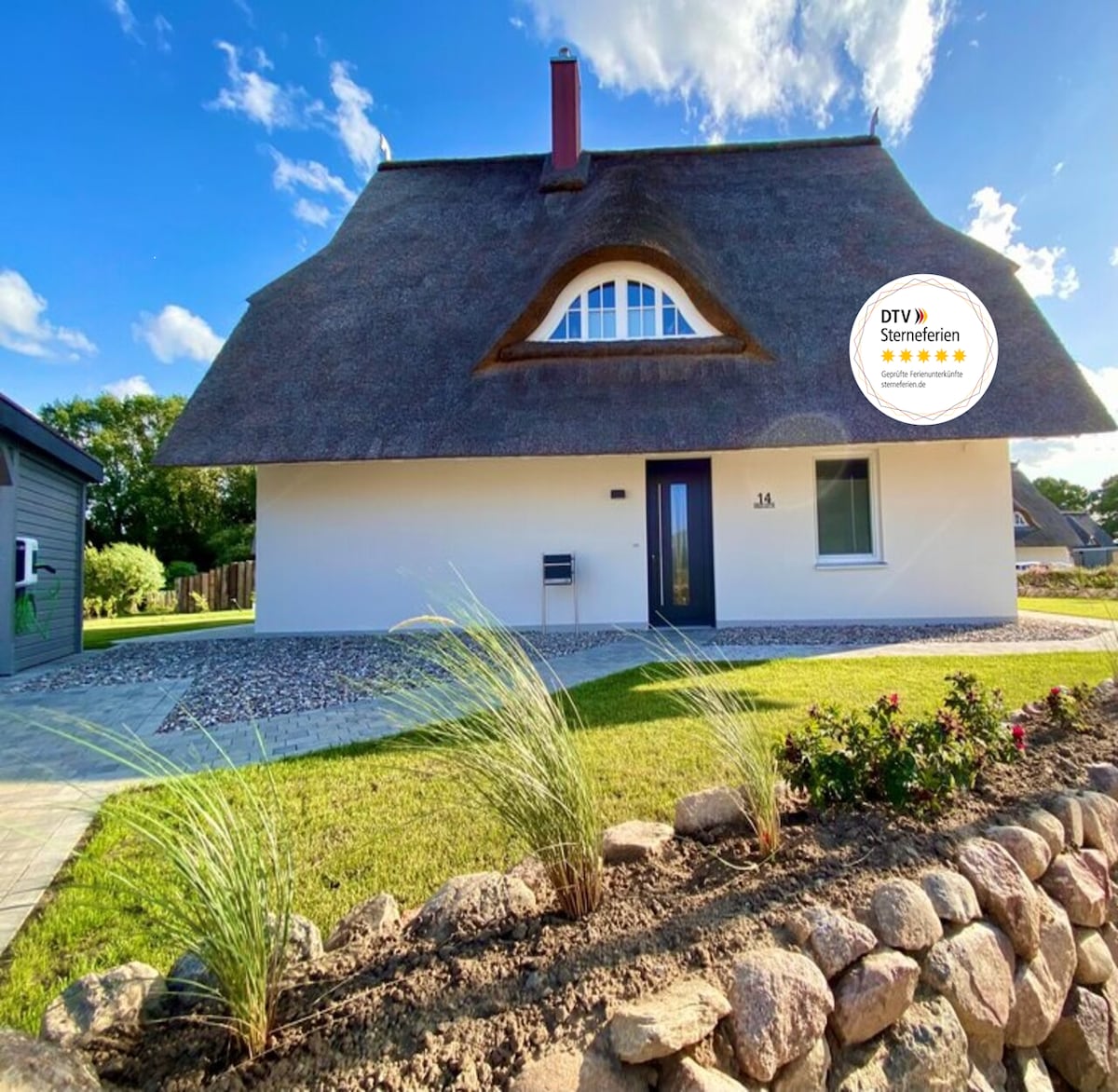 Enstpanne in einem modern eingerichteten Holzhaus direkt an der Ostsee. Nach dem Strandgang, springst du im windgeschützten Garten unter die Gartendusche und entspannst danach im warmen Badezuber, lauscht den Möwen, gehst vielleicht noch einmal in die Sauna, bevor du dich zum Entspannen auf die Lounge der Veranda, oder auf die geschützte Loggia zurückziehst. Den Tag lässt du mit einem Getränk am Kamin ausklingen und genießt den großen Essbereich mit deinen Liebsten. Willkommen in der Ole Käthe.