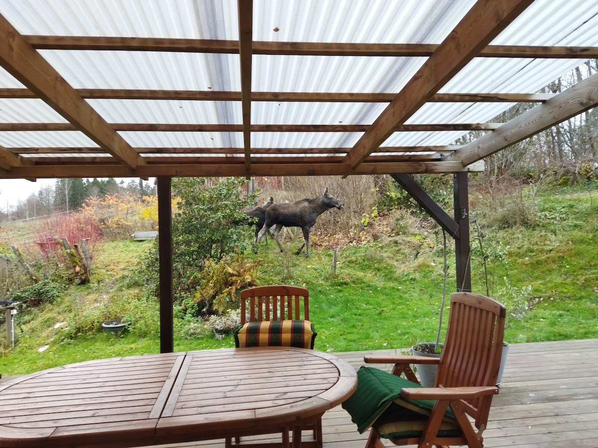 Slappna av i detta unika och trevliga boende. Nära till allmänheten om man vill, annars kan man njuta av lugnet på avstånd från andra. Trevliga promenadstråk finns nära inpå. Naturen finns precis bredvid och bjuder på magisk utsikt ut över sjön. Man kan enkelt hyra fiskekort och fiska i sjön. För de som vill kan man hyra kanoter och enkelt ta sig upp i sjön.