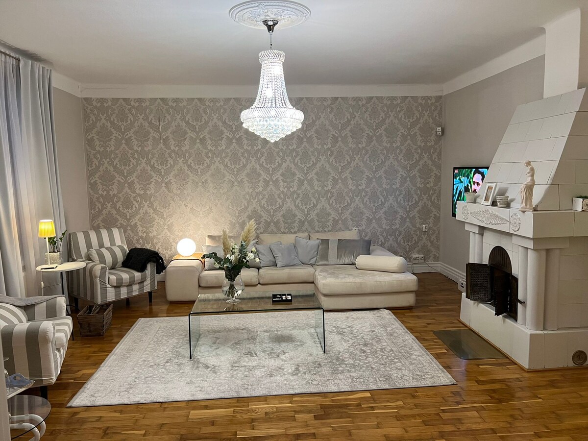 Bright, spacious and beautifully designed — 112 m² apartment on the 5th floor in the heart of the city: 🌿 10m private balcony — views of the park and Vaasa pedestrian street 🪵 Solid white wood flooring, large windows, airy interiors 🛏️ 2 bedrooms with double beds — sleeps 1–4 🧻 Dedicated laundry room with washer + dryer 🍳 Fully equipped kitchen ❄️ Air conditioning ⚡ WiFi + wired 1 Gbit/s internet 🚗 Warm indoor garage (3m clearance) — direct elevator to the apartment