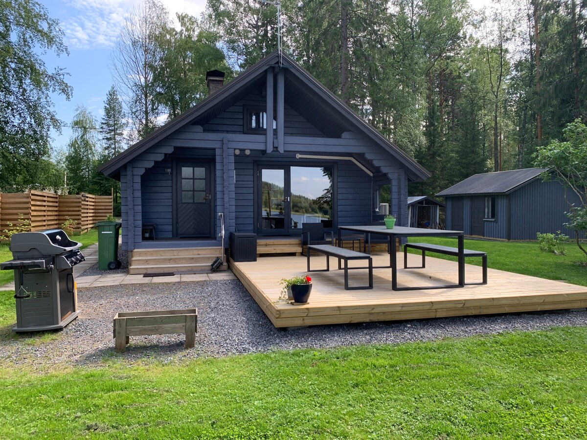 Fridfull villa vid sjön. Yta: 80 m2 inomhus + stor terrass och utebastu Antal bäddplatser är 6 separata sängar. Rum: Kök, vardagsrum, 3 sovrum, hall, badrum +bastu Faciliteter: öppen spis, kylskåp/frys, elektrisk spis och ugn, diskmaskin,microvågsugn, kaffebryggare, vattenkokare. På gården finns ytterligare en strandbastu.