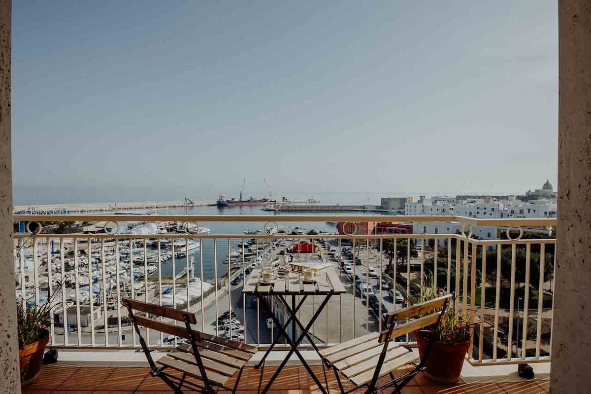 "Seafront penthouse suite with terrace" is an accomodation in a residential area of Monopoli city, a famous place on the Adriatic sea with the natural creeks and old town, in which you can find typical restaurants, pub and night life. The guests have a double bedroom with memory foam, conditional air, fridge, TV, WI-FI, bathroom, and exclusive access to a terrace overlooking the sea with relax area. Ideal accomodation to couples looking for a relaxing holiday.