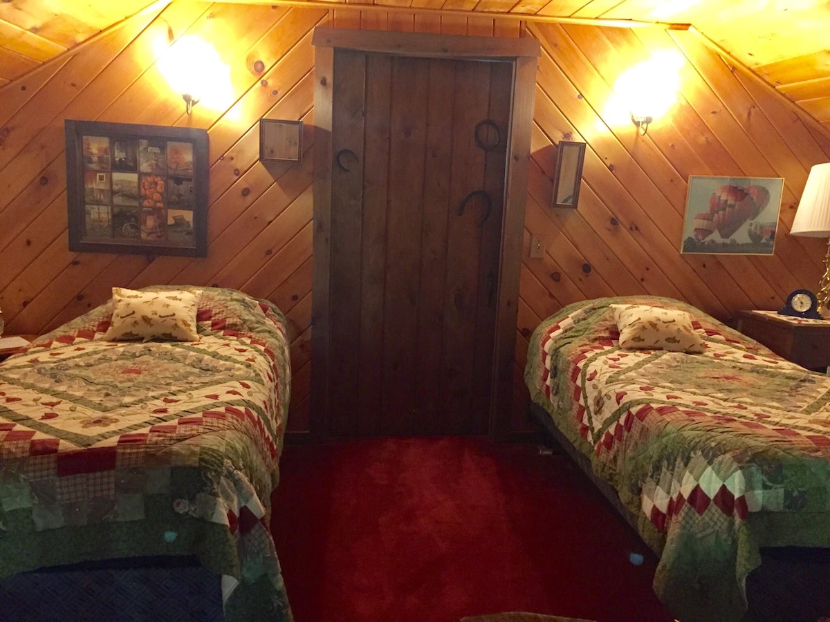Hidden Acres Lodging is on 352 private acres with 3 rental homes and 3 ponds. We are 2.5 miles from Pulaski exit off Route 81 near the famous Salmon River. This room is an open space on the landing of the second floor of a log cabin. There is no door to room or privacy like with a bedroom! There is a fire pit shared outside with picnic tables on porch. Two other bedrooms are for other guests and a bedroom for the owner/caretaker.
