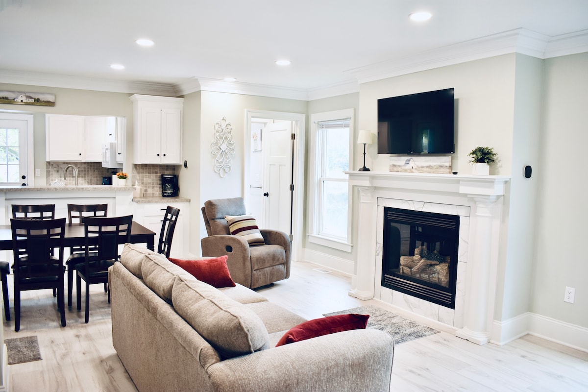 Vastly superior to area hotel rooms this HIGH END 1br apartment is equipped w FREE WIFI, 50" & 32" ROKU TVs (use your favorite apps), Cable TV via Spectrum App, DVD/CD/Blue Ray Player, Bidet, Washer Dryer Combo, Jacuzzi Tub, Equipped Kitchen. Bedroom w Best King Bed EVER, Wardrobe/Closet Chest of Drawers, Night stands, Bathroom, and Living Room w easy to use Queen Sleeper Sofa. Gas, Electric, Water, Snow Removal, Parking, Real Hard Wood Floors, Tile Kitchen/Bath. HUGE DISCOUNTS FOR LONGER STAYS!