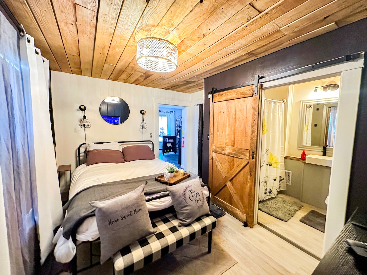 宽敞的独立1卧公寓,配备加大双人床、按摩浴缸和ROKU电视