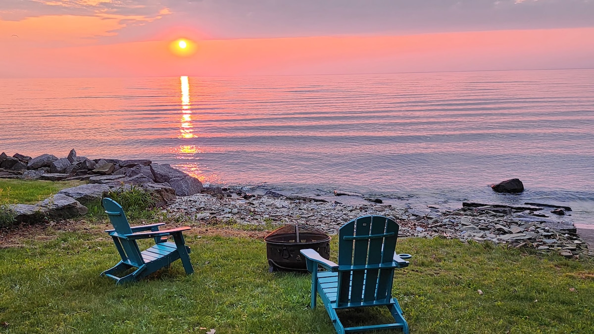 Welcome to the Sunset Serenity. Located on the shore of Lake Ontario, kick back & relax in this calm and stylish space or enjoy the world-renowned sunsets from the expansive backyard. This newly remodeled lake home offers all the conveniences of being in the city, with the privacy of a secluded vacation. This property boasts two spacious bedrooms, both with queen size beds, a chic bathroom with modern tile finishes, & the highlight of this interior: the open concept living room & kitchen.