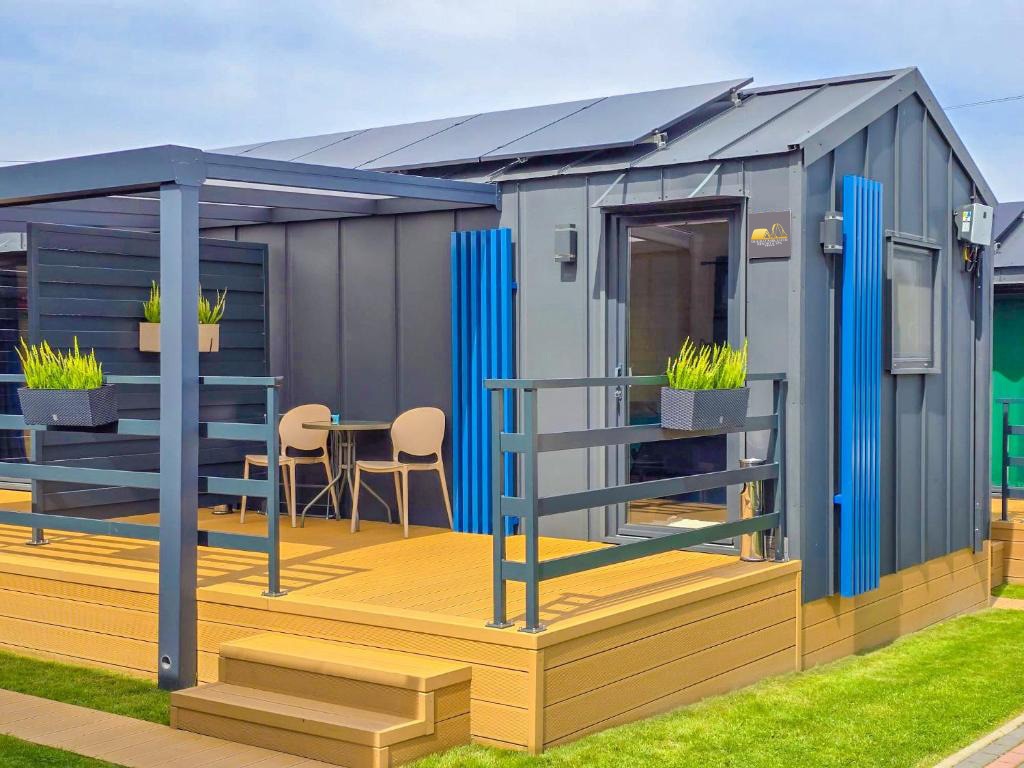 Oferowany Domek w stylu pokoju hotelowego posiada taras z widokiem na rollercoastery, na którym mamy grill, oraz stół z krzesłami. Wybrany domek posiada prywatną łazienkę. Cena obejmuje pobyt do 2 osób. Nie istnieje możliwość wykupienia dodatkowej dostawki. Dla Państwa komfortu, w domku mogą być zakwaterowane 2 osoby. W wybranej opcji za opłatą jest możliwość organizacji pakietu romantycznego - po więcej informacji zapraszamy do kontaktu z Recepcją obiektu.