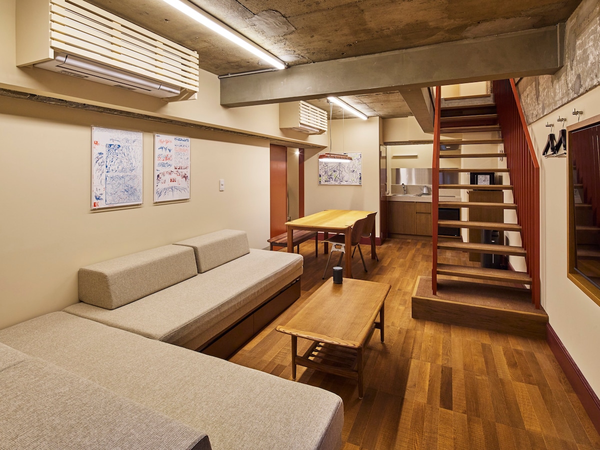 渋谷「幡ヶ谷駅」徒歩6分|洗濯乾燥機&キッチン付き|最大8名|61㎡|メゾネット4ベッド