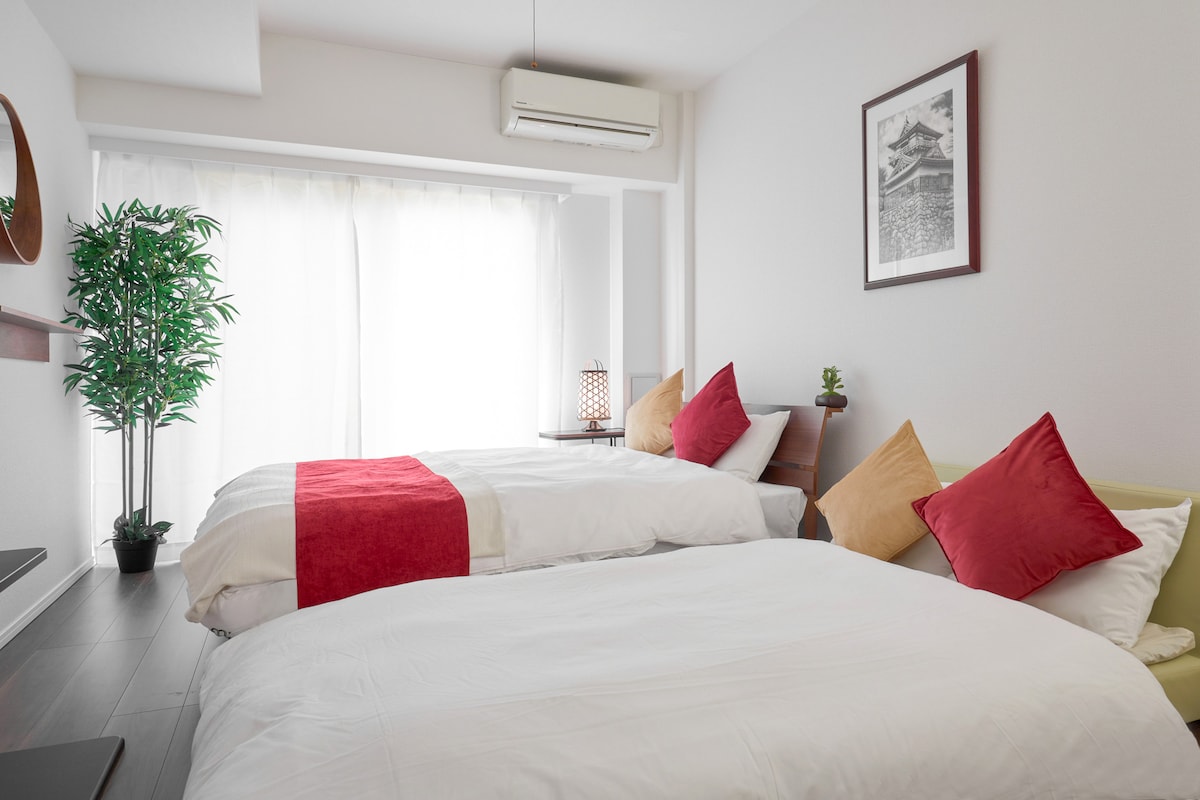 ◆2025年7月オープン◆ 京急蒲田駅徒歩4分(300m)と空港・駅からのアクセス抜群。 商店街・スーパー・コンビニが近く非常に便利です。 2025年4月新築で6階建てで綺麗なお部屋です。 1フロア1戸の為プライベート空間のように利用できます。 ・101は42㎡でシングルベッド3台、ソファベッド1台の宿泊最大人数4人までのお部屋です。 ・ベッドは高級ホテルでも使用されているマットレス(Serta)を採用しております。 ・館内は高速無料Wifiを用意しております。5GHz帯で下り300MHz程度 ・4K55型テレビ ・建物に合計5部屋ございます。団体で複数のお部屋をご利用の場合は別リスティングからご予約ください。 ◆アクセス◆ ・京急蒲田駅徒歩4分、JR蒲田駅、東急蒲田駅徒歩7分、 ・羽田空港から電車で約10分 ・新宿、渋谷まで電車で約30分 ・品川駅まで電車で約10分 ◆周辺施設◆ ・近隣には有料駐車場多数あり(1日最大1500円程度)