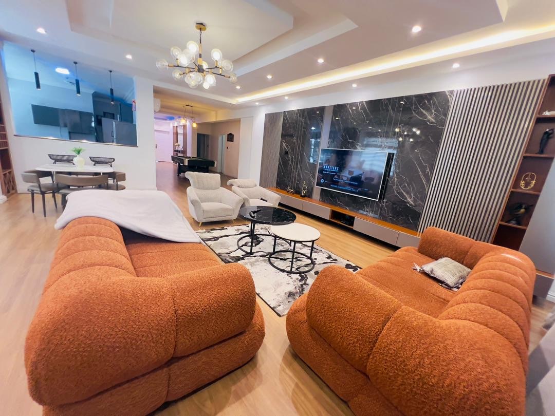 In this home, We’ve passionately created that perfect Indoor/Outdoor experience. It comes complete with a Pool, Gazebo, Laundry area and more. Inside is a living area with 65inch smart Tv and leather settees. Your bedrooms come ensuite with modern bathrooms and high water pressure. The kitchen comes with a heat extractor, and burners. Our WiFi is wired and Super fast. Power is 24/7. At your service is a Security guard and Porter.