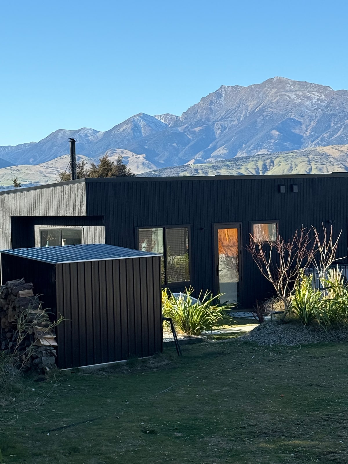 This gorgeous 1 bedroom studio unit is perfectly located to experience all Wanaka has to offer. Separate from the main house, you will enjoy a quiet warm spot to rest and recharge. Only a 2 min drive to the outlet river and boat ramp, Hikuwai bike/walking tracks and Mt Iron Walk. Enjoy having a full kitchen, a washing machine and a BBQ.or wander 5 mins to the cafe/bar for a coffee, meal or drink.