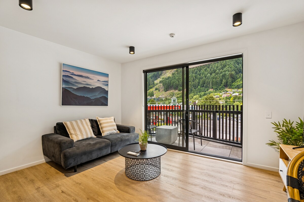 Relax and unwind at The Alex in our new 1-bedroom, top floor apartment with own balcony and gorgeous views. Suits two adults (and two children up to 12 years old - for free!) with comfy sofa bed in the lounge. (Tell us if you require sofa bed) A 10-15 min walk from Queenstown town centre with amazing restaurants, bars and activities! With a full kitchen, living space, WiFi, Netflix, it has everything you need for a relaxing holiday. Community gym and secure garage parking spot!