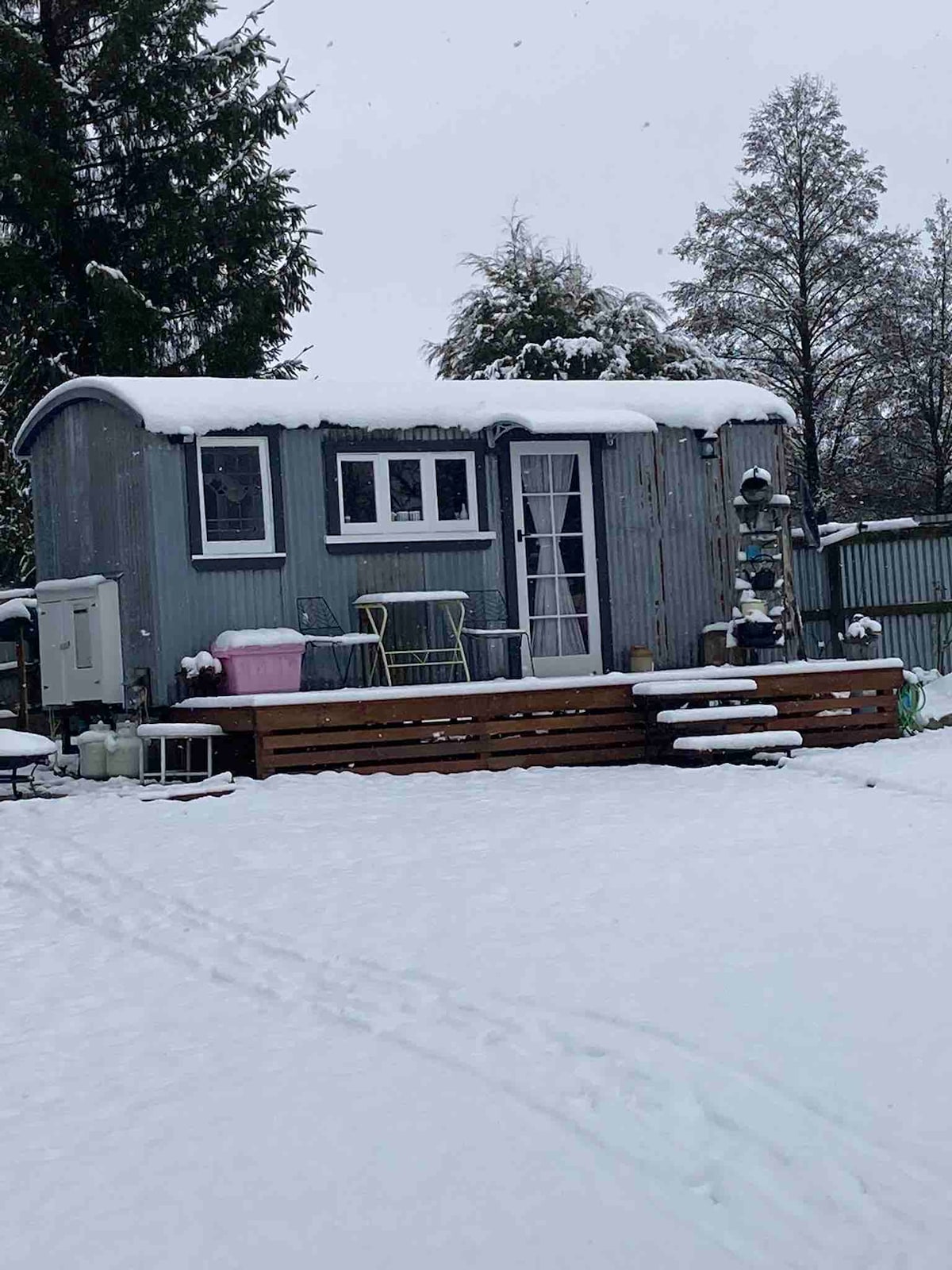 You will enjoy this romantic, luxury motorhome. It is a tiny home on wheels with a very comfortable bed, two wardrobes, two towers of shelves for your clothes, shoes and toiletries and you can store your bags or small suitcases under the bed. It has a good-sized fridge/freezer, lots of utensils, and an oven, if you like to cook. There's even a roasting dish! It has a shower that is separate from the toilet and handbasin area. It is cosy motorhome that has double glazing and a gas heater.