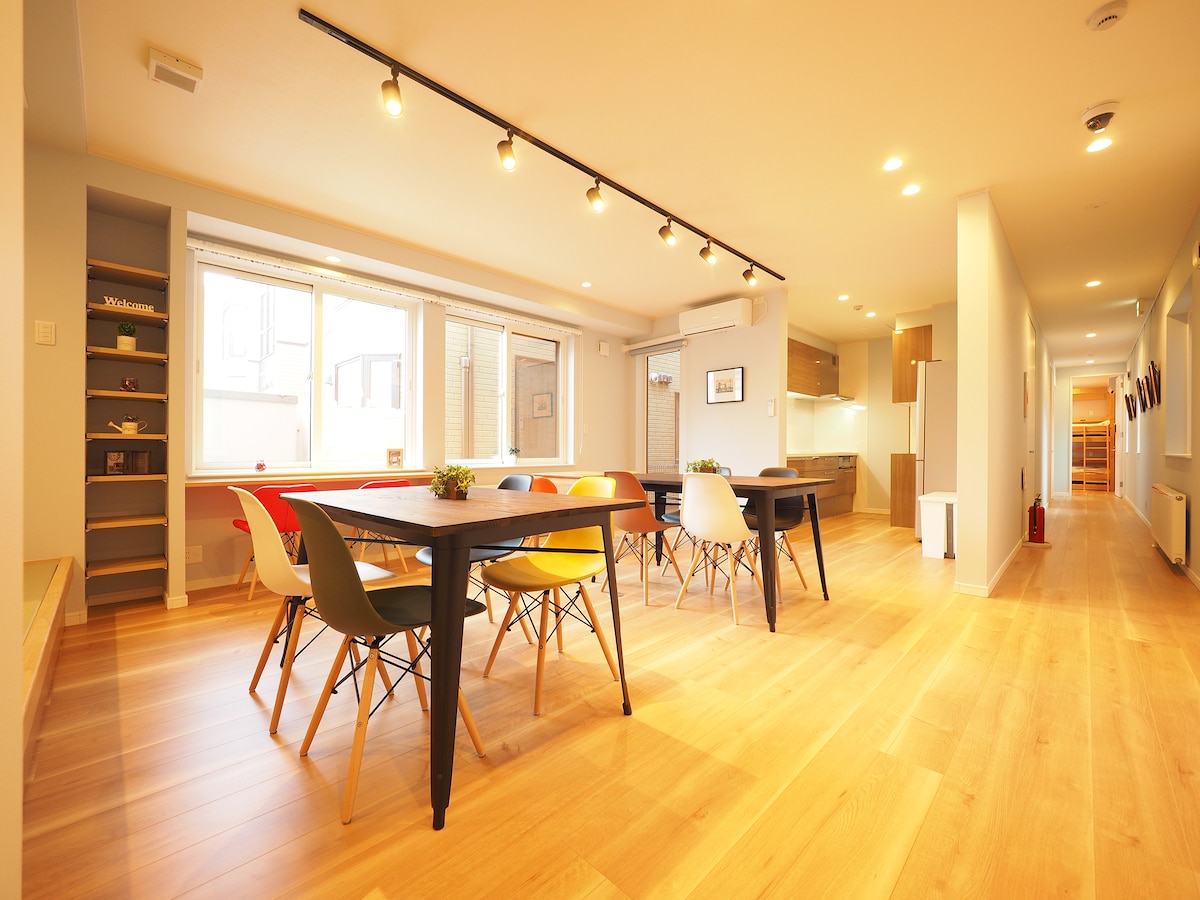 "FAMILY TREE" is a small GUEST HOUSE which was newly built in 2020 and located near Nakajima Park. It may not be as convenient as hotels, but we want to give homely relaxing experience! It's 5 minutes walk from "Nakajima Koen Dori(中島公園通)" and "Gyokei Dori(行啓通)" tram (Shiden) station. We also run an English Cafe & School near Sapporo Station. So you are welcome to pop in :) 中島公園からほど近く、2020年オープンしたばかりの小さなゲストハウス"FAMILY TREE"です! ホテルとは一味違うアットホームな空間を楽しんでください~ 市電「中島公園通」「行啓通」から徒歩5分です。
