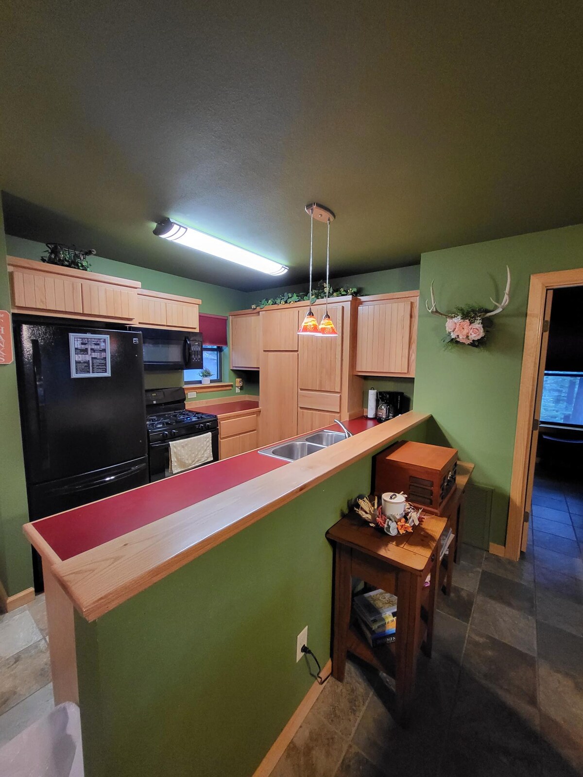 Welcome to the Grinning Grizzly Cabin! This rustic modern cabin creates a environment that makes you feel right at home. Where your only a few miles from great food, midtown and grindstone lake! This perfect cabin is where you can enjoy time with family and friends and make memories that last a lifetime. With amenities ranging from free wi-fi, parking in back and front, updated appliances, coffee bar, washer and dyer usage, fireplace and a large yard to enjoy outdoor activities!